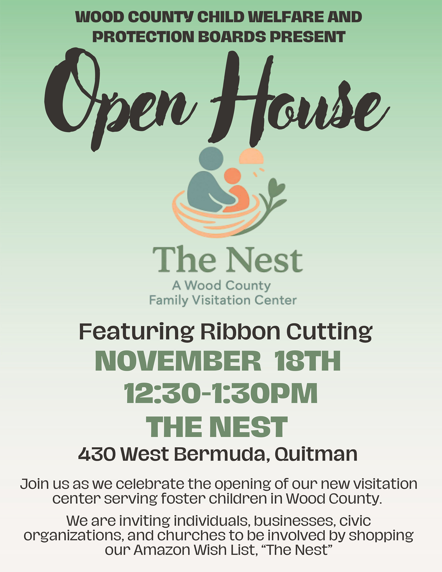 Join us as we celebrate the opening of our new visitation center serving foster children in Wood County.
